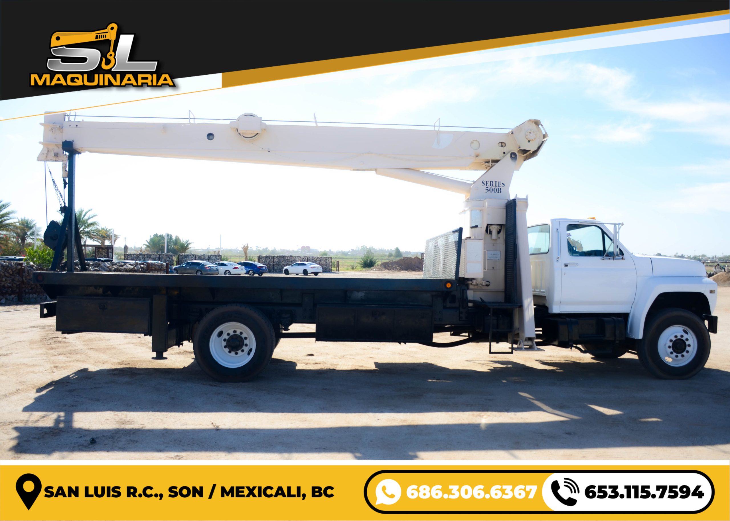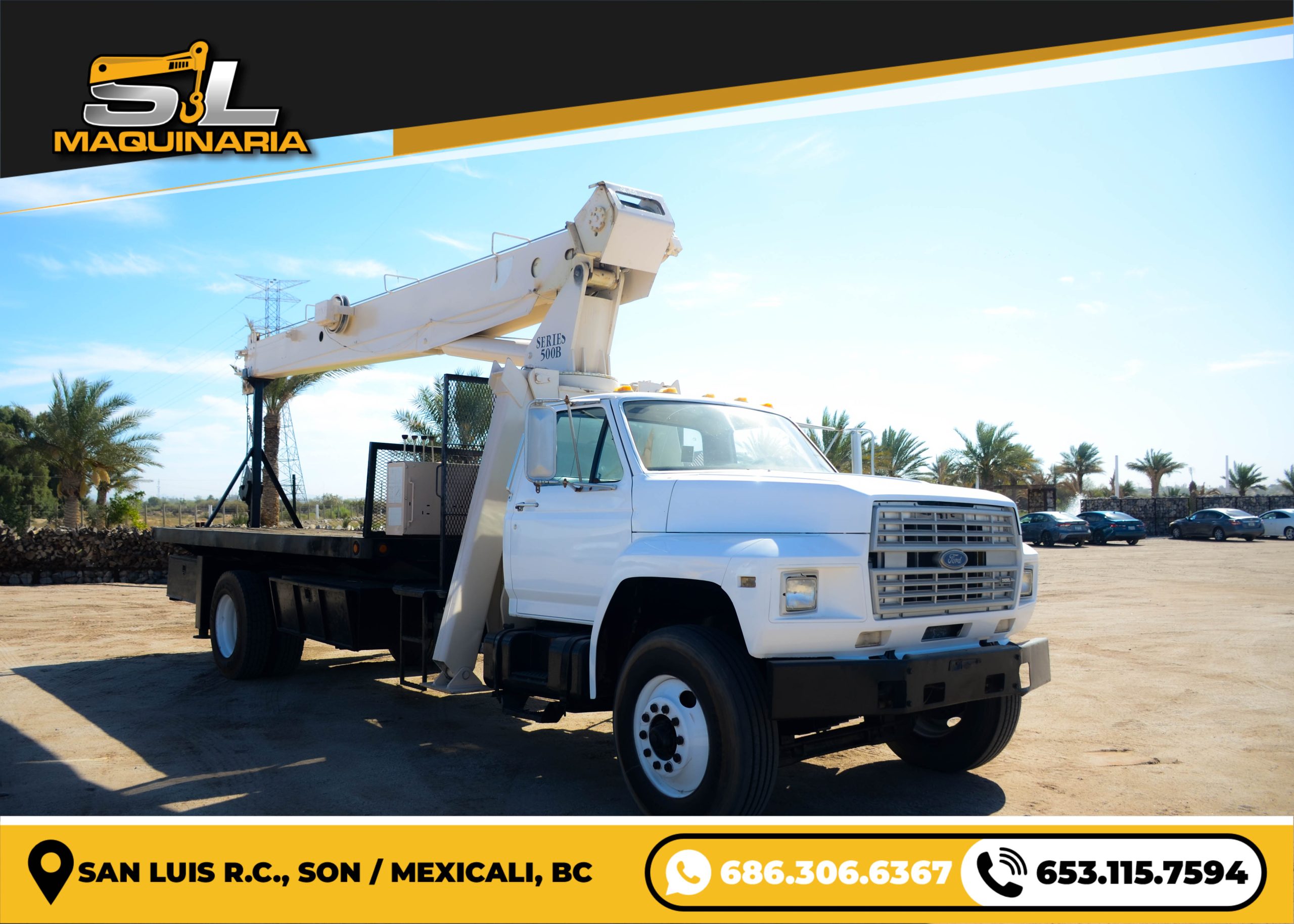 Grúa Ford con pluma National de 12.5 toneladas, año 1990. Unidad de bajo costo para operaciones de izaje livianas y medianas, en condición operativa.