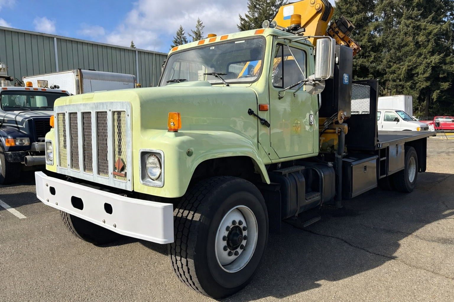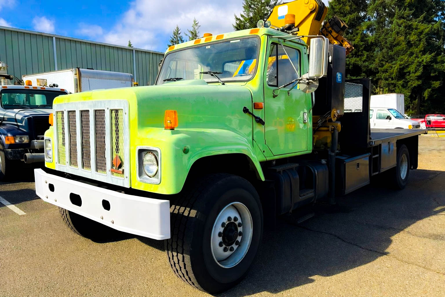 Grúa articulada International con brazo Effer de 25 toneladas, año 2001. Mayor capacidad de carga con estabilidad y precisión para izajes industriales.