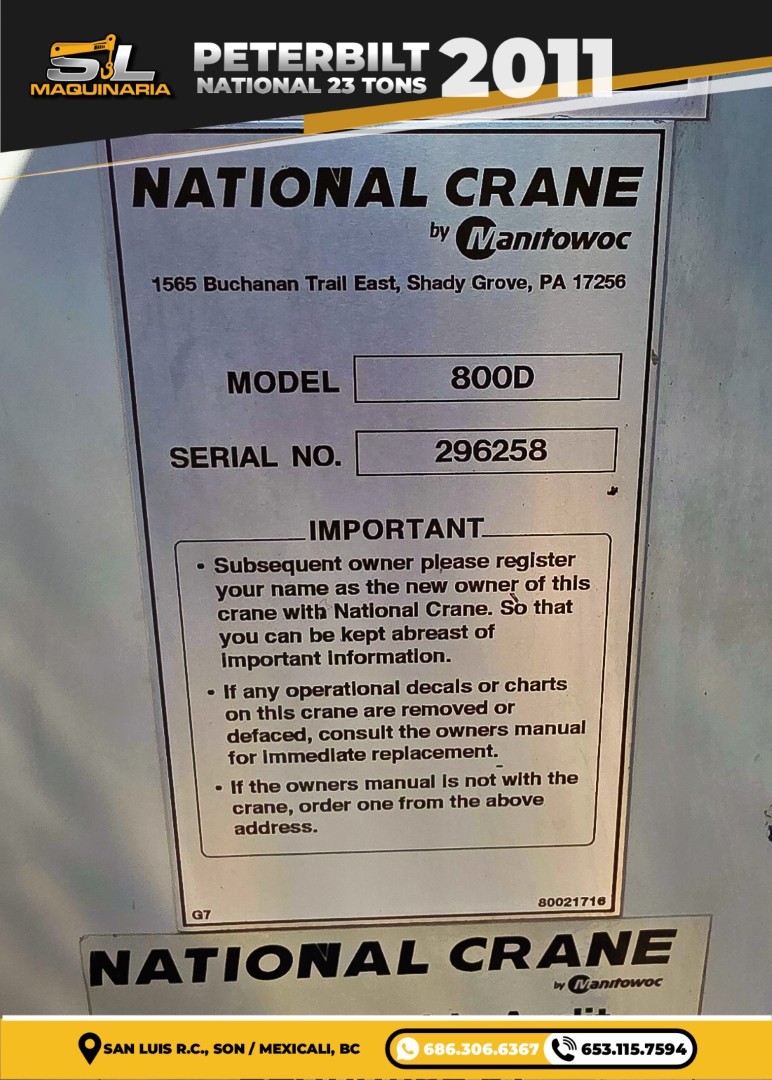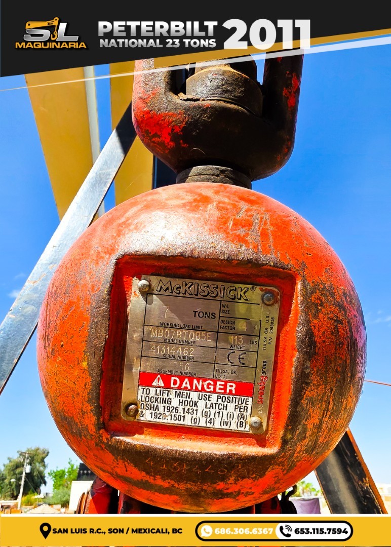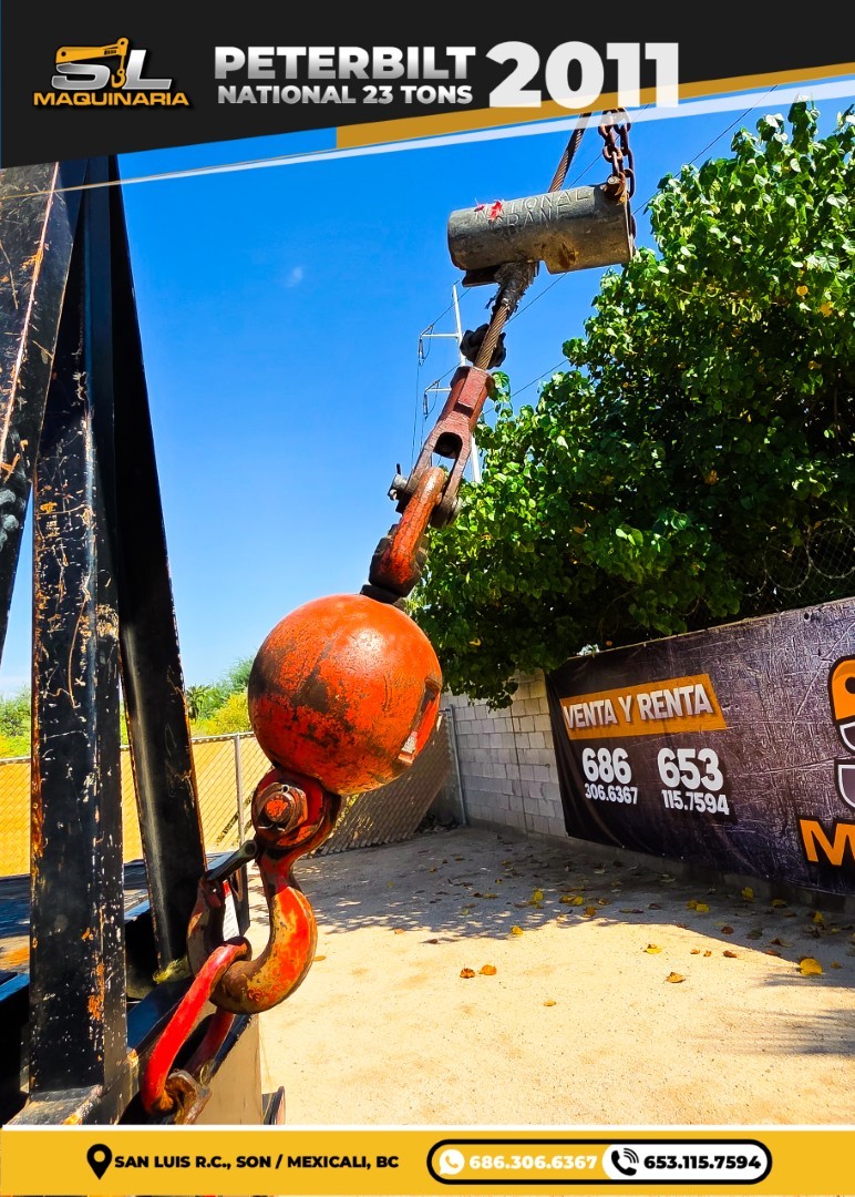 Grúa Peterbilt – National de 23 toneladas, año 2011 (Ref. 28283). Potente y confiable para izajes medianos y pesados en construcción y montaje.