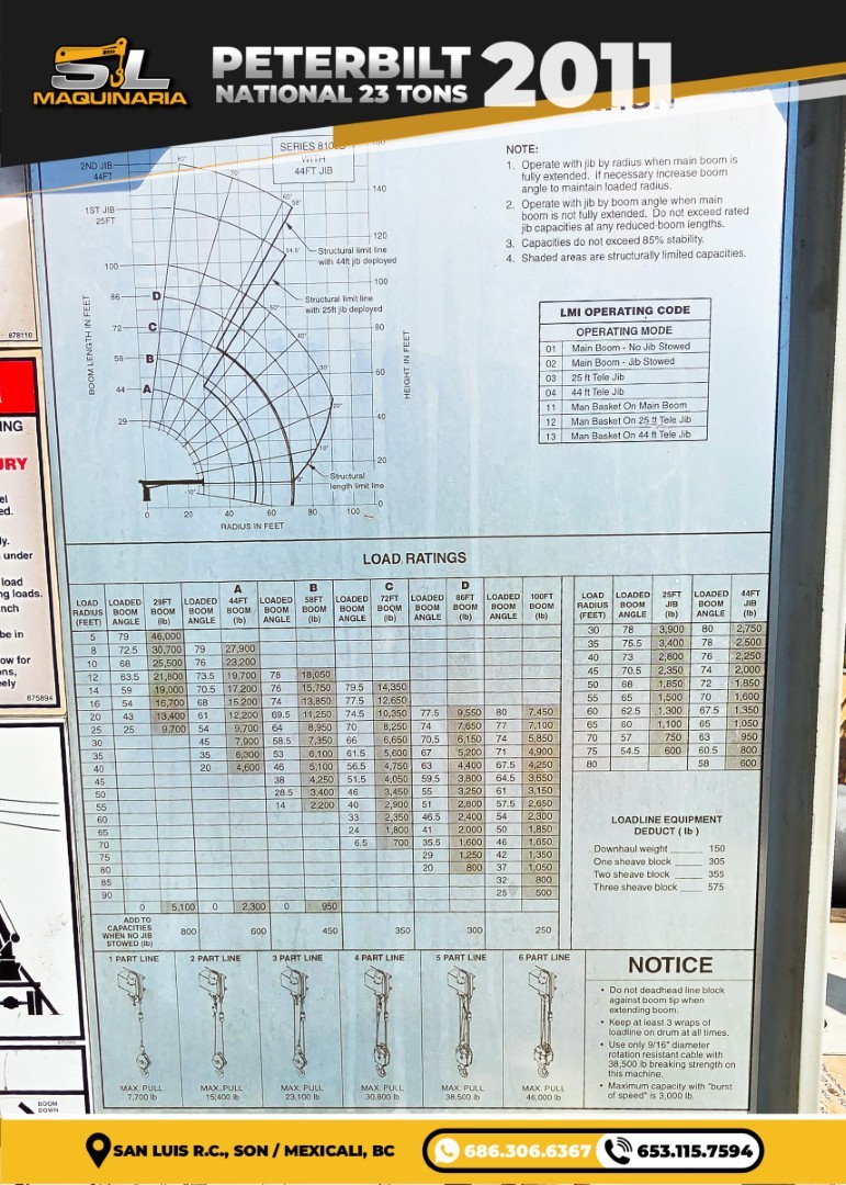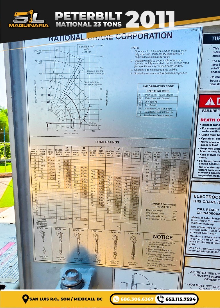 La grúa Peterbilt – National de 23 toneladas (2011, Ref. 28283) ofrece un equilibrio sólido entre capacidad, estabilidad y maniobrabilidad para operaciones de izaje en obra civil, estructuras metálicas y mantenimiento industrial. Su configuración sobre camión Peterbilt con equipo National brinda desempeño consistente y versatilidad en campo.