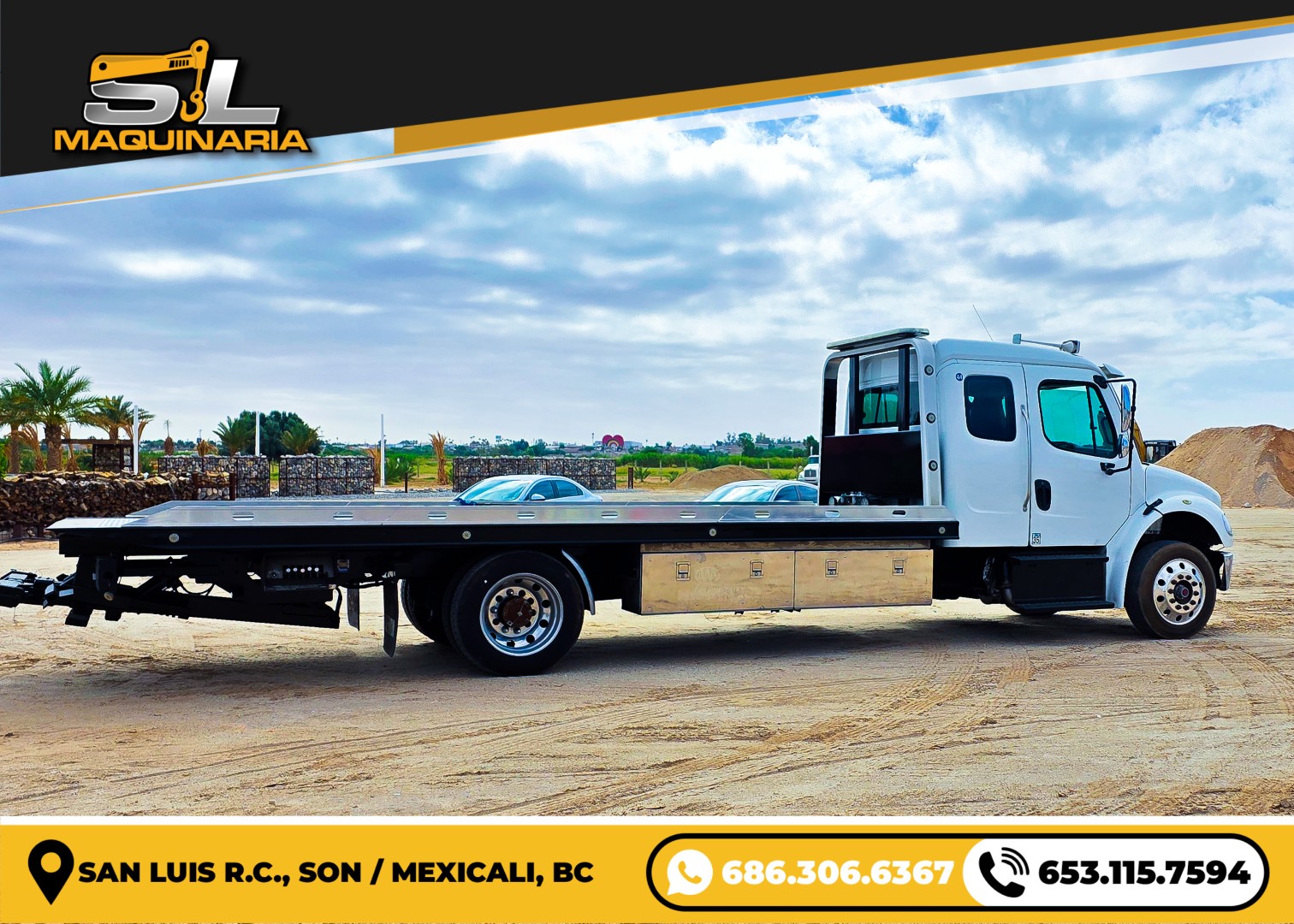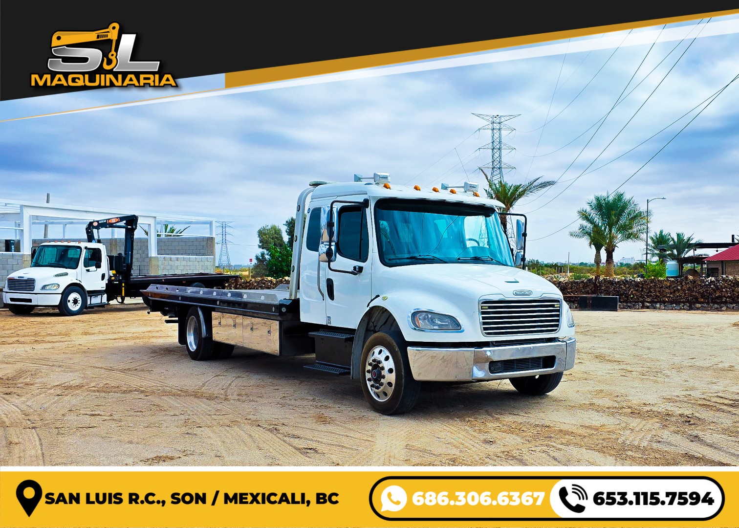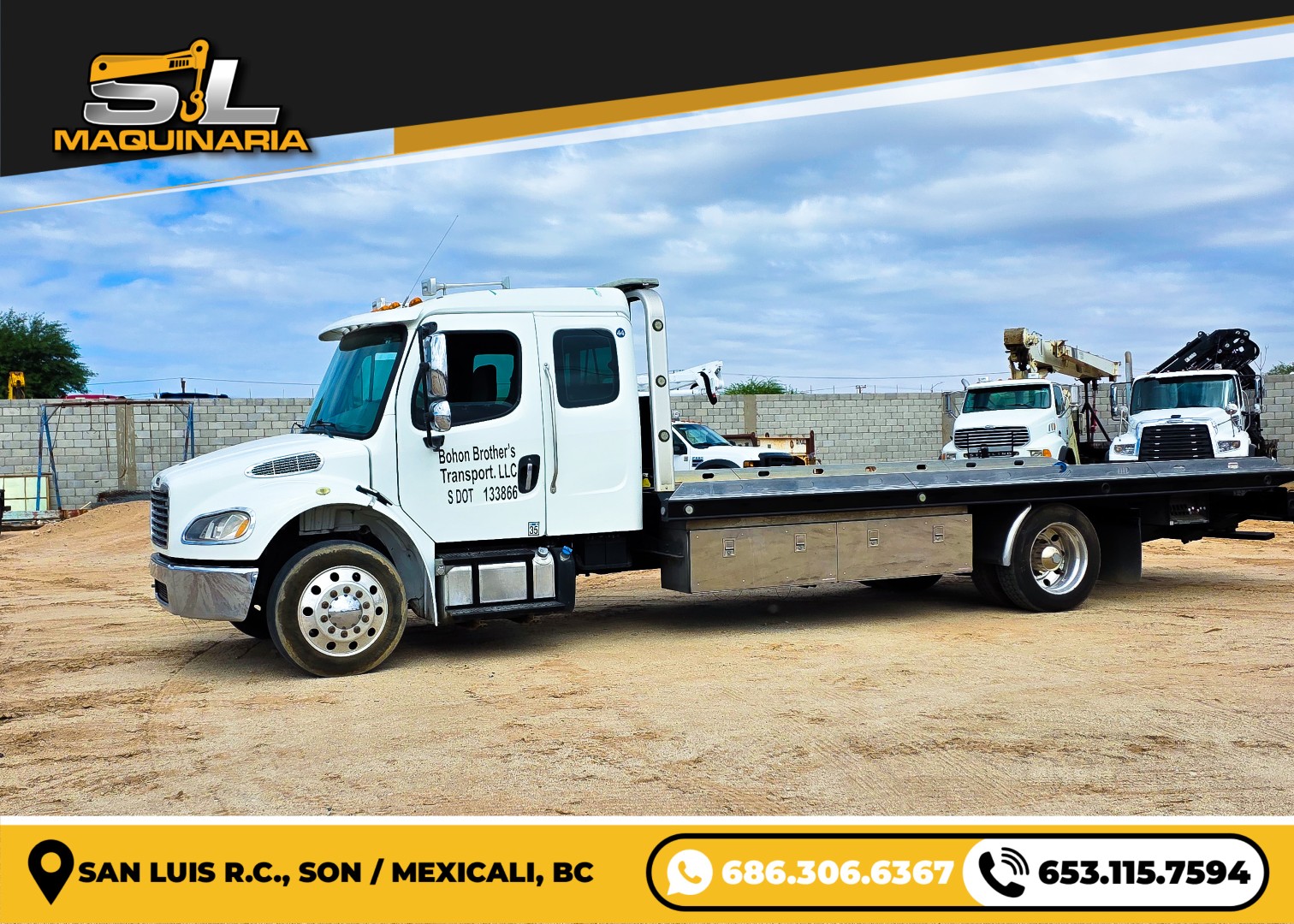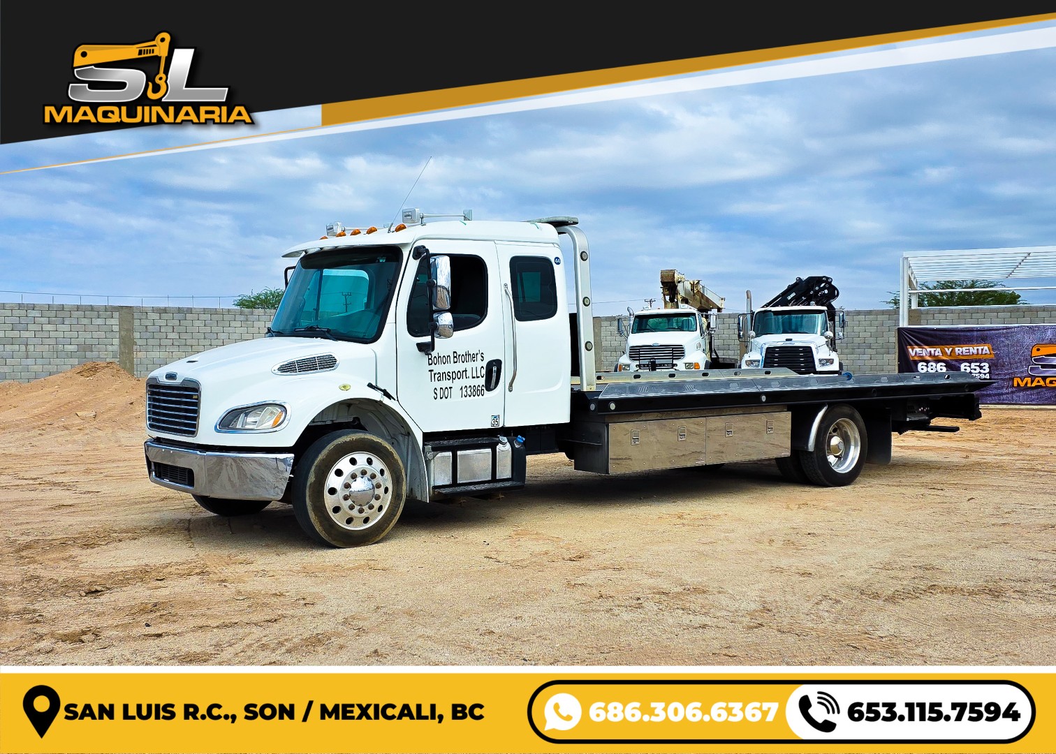 Grúa plataforma Freightliner 2016 (Ref. C6509). Maniobrable y confiable para traslado de vehículos y logística urbana.