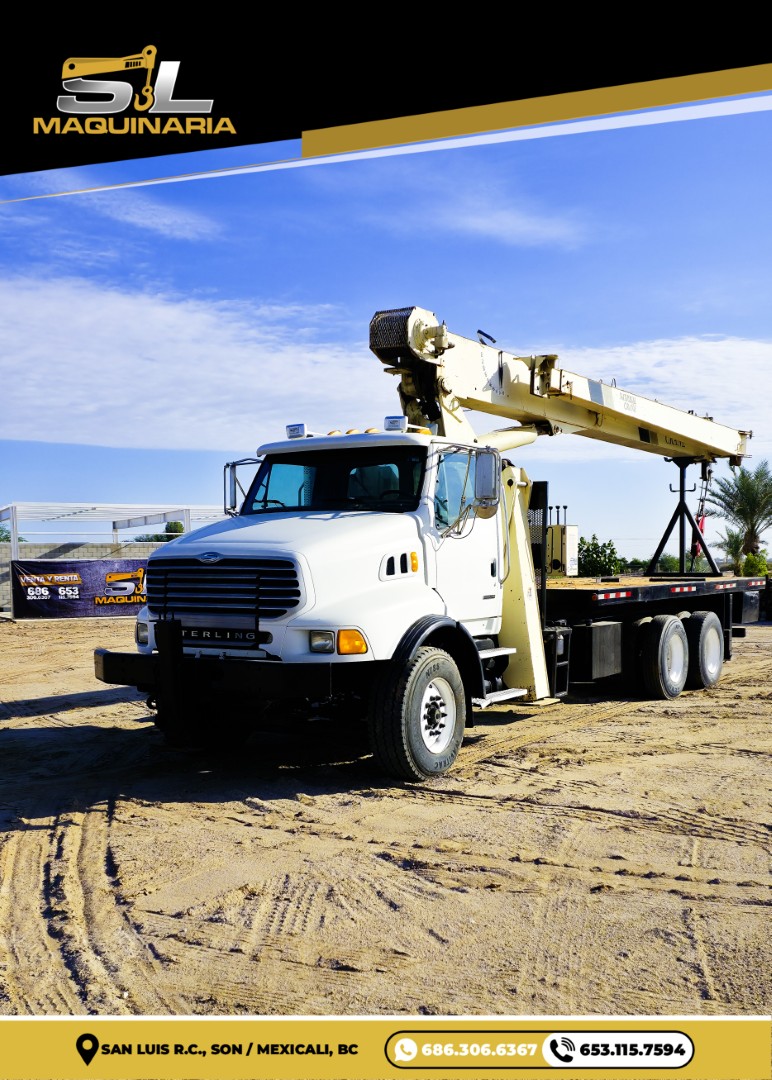La grúa Sterling – National de 23 toneladas (2008) ofrece una combinación robusta de capacidad, estabilidad y maniobrabilidad para operaciones de izaje en obra civil, estructuras metálicas y mantenimiento industrial. Su configuración sobre camión Sterling con equipo National brinda desempeño consistente en jornadas exigentes y una buena relación capacidad–productividad.