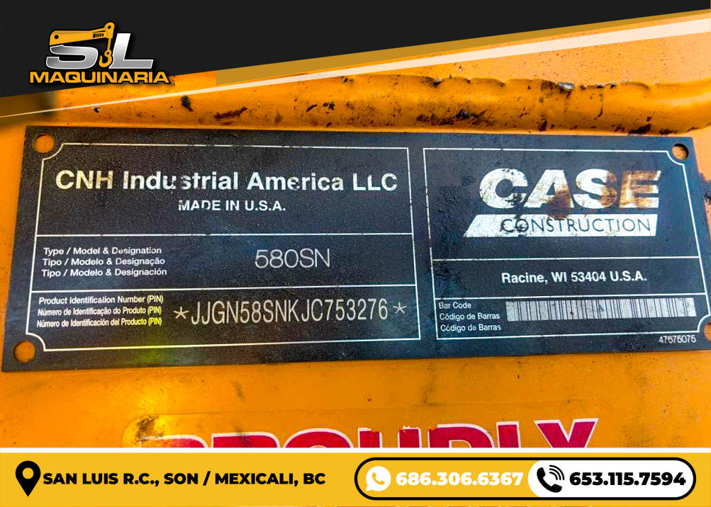 Ofrecemos esta Retroexcavadora Case 580SN, año 2019, una de las unidades más recientes y avanzadas de nuestra flota. La serie 580SN de Case es reconocida mundialmente por su potencia, comodidad del operador y rendimiento en todo tipo de terrenos. Con pocas horas de uso, esta máquina representa una inversión de alto valor para su empresa.